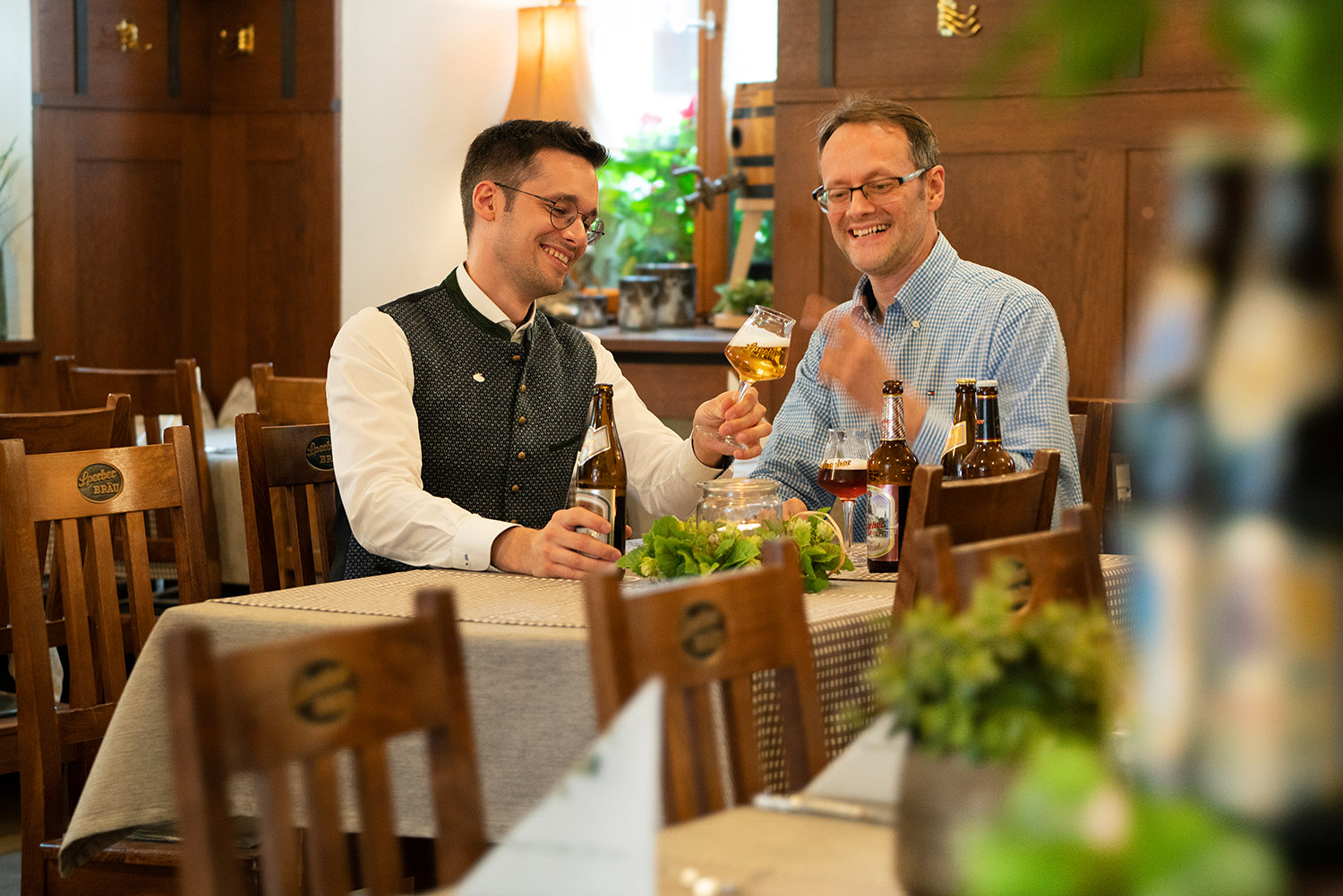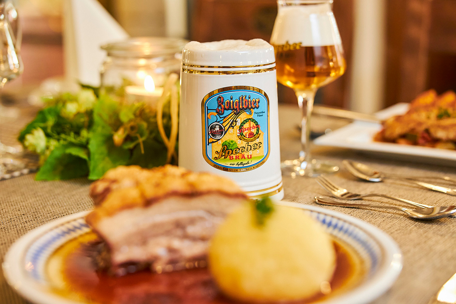 Im Sperber-Bräu dreht sich alles um das Thema Genuss. Als traditioneller Gasthof in Familienhand steht die Qualität der eigenen Produkte ganz oben auf der Tagesordnung. Dies gilt für die Küche ebenso wie für die Auswahl leckerer Biere aus der hauseigenen Brauerei. Die Küche im Sperber-Bräu ist geprägt von regionalen, saisonalen Gerichten. Die Karte ist gutbürgerlich und deftig, aber auch für Vegetarier und Liebhaber der leichten Küche gibt es eine Auswahl. Passend dazu werden Ihnen vom aufmerksamen Service die hervorragenden Biere des Hauses angeboten.