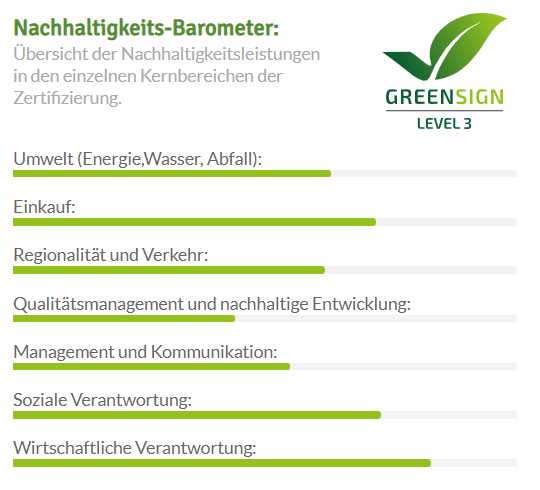 Das Thema Nachhaltigkeit liegt Familie Frank besonders am Herzen. Mit einem Hotelbetrieb hat man eine große Verantwortung, da der Ressourcenverbrauch sehr hoch ist. Dem sind sich die Traditionsgastgeber auf der Schwäbischen Alb bewusst und stellen sich der Herausforderung mit großem Erfolg. Im April 2019 wurde das Flair Hotel Vier Jahreszeiten in Bad Urach von GreenSign zertifiziert und erreichte direkt Level 3 von 5.