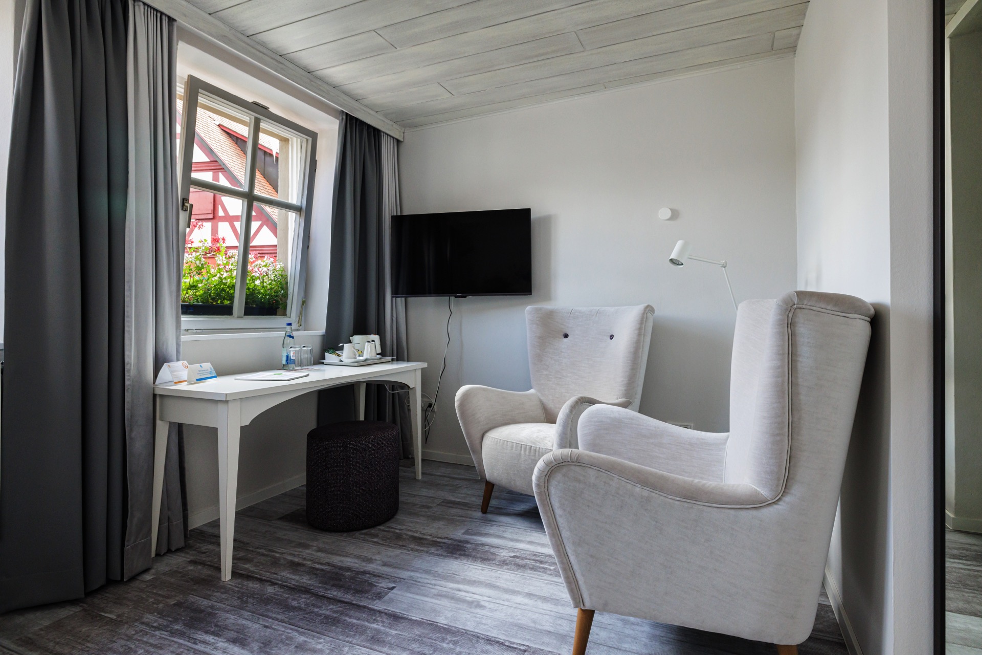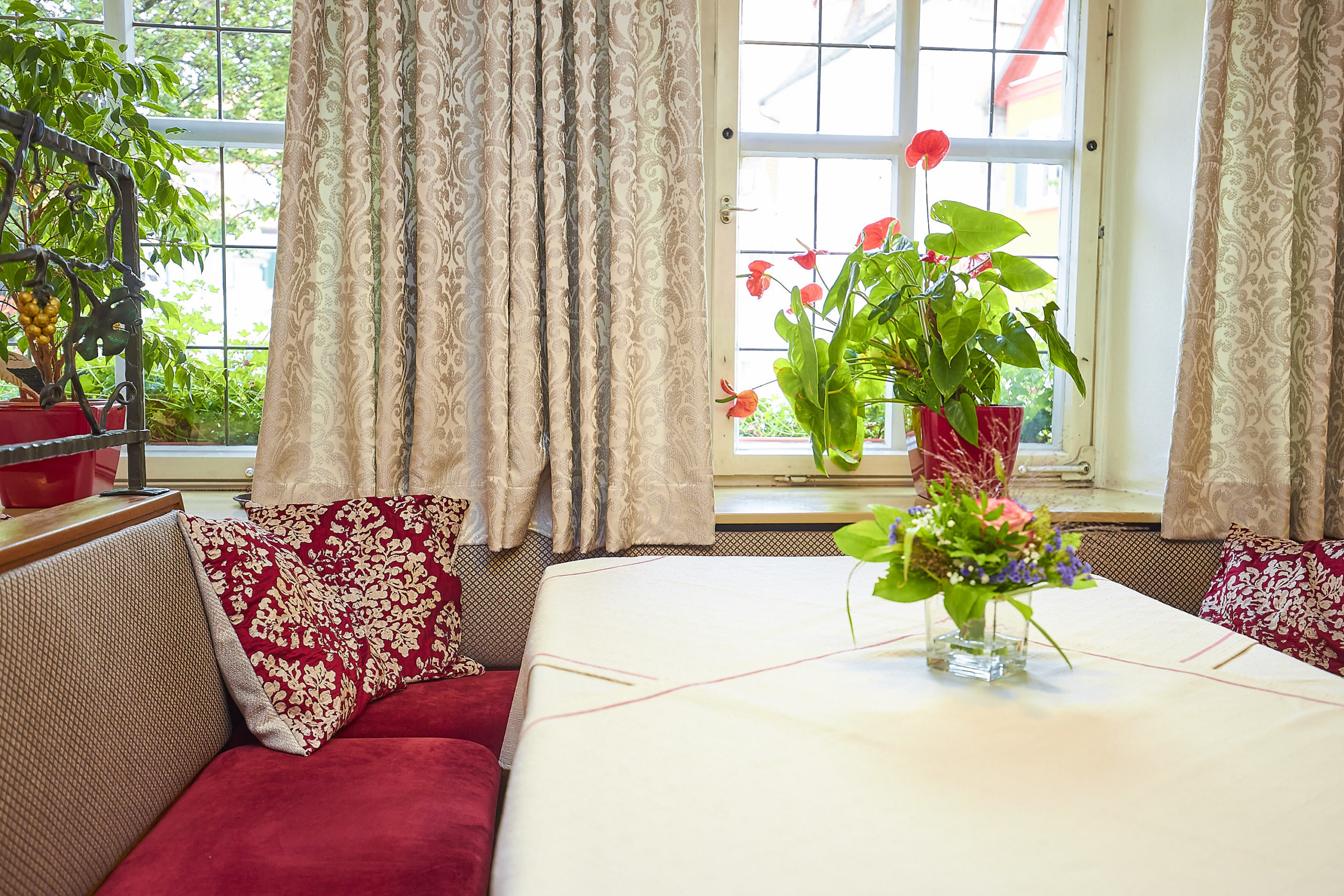 Das Gebäude wurde im Jahre 1736 vom großen Brand in Bad Windsheim verschont und ist seit dieser Zeit im Besitz der Familie Götz. Seither lebt und arbeitet die Familie, mittlerweile in 11. Generation, am Weinmarkt. Staunen Sie über die wunderbare Ahnentafel im Hoteleingang.