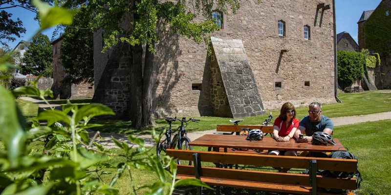 Wer gerne mit dem Fahrrad unterwegs ist, wird auch im Spessart seine Freude haben. Entspannte Radtouren führen vor allem entlang der Flüsse. Zum Beispiel der MainRadweg, der dem blauen Band des Flusses folgt und im Jahr 2008 als erster deutscher Radfernweg mit fünf Sternen ausgezeichnet wurde. Aber auch Kinzig, Fränkische Saale und Sinn sowie zahlreiche Nebenflüsse laden zu genussreichen Touren ein. Überdies lassen sich viele Täler ohne größere Höhenunterschiede vom Sattel aus erkunden. Wer es lieber sportlich mag, kommt auf den Routen der Initiativen „Bikewald Spessart“, „SpessartBiken“ und der Churfranken-Region auf seine Kosten. Gemeinsam bilden die Trails eines der größten Mountainbike-Netze bundesweit. Zusätzliche Fahrfreuden für Mountainbiker versprechen der Flowtrail in Bad Orb und der MTB-Bike-Park in Frammersbach. Für E-Bikes hält der Spessart ein umfangreiches Netz an Schnellladestationen bereit.